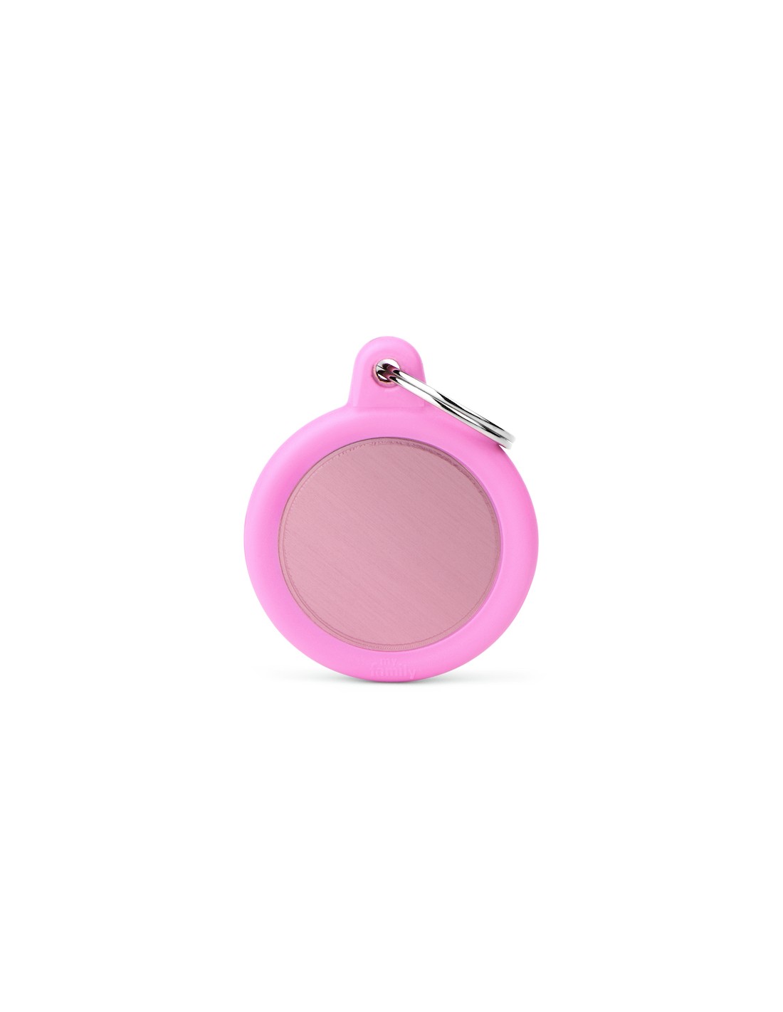 Medaglietta Myfamily Hushtag Cerchio Alluminio Rosa Con Gomma Rosa