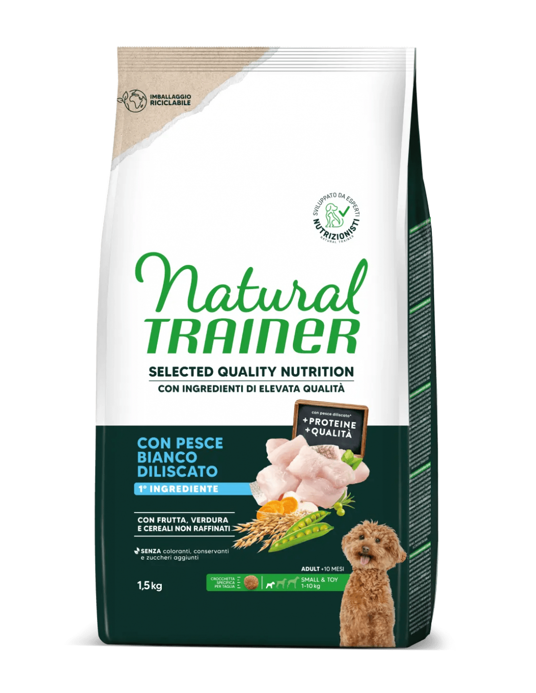 TRAINER NATURAL SELECTED DOG 1,5KG ADULT SMALL & TOY PESCE BIANCO DILISCATO