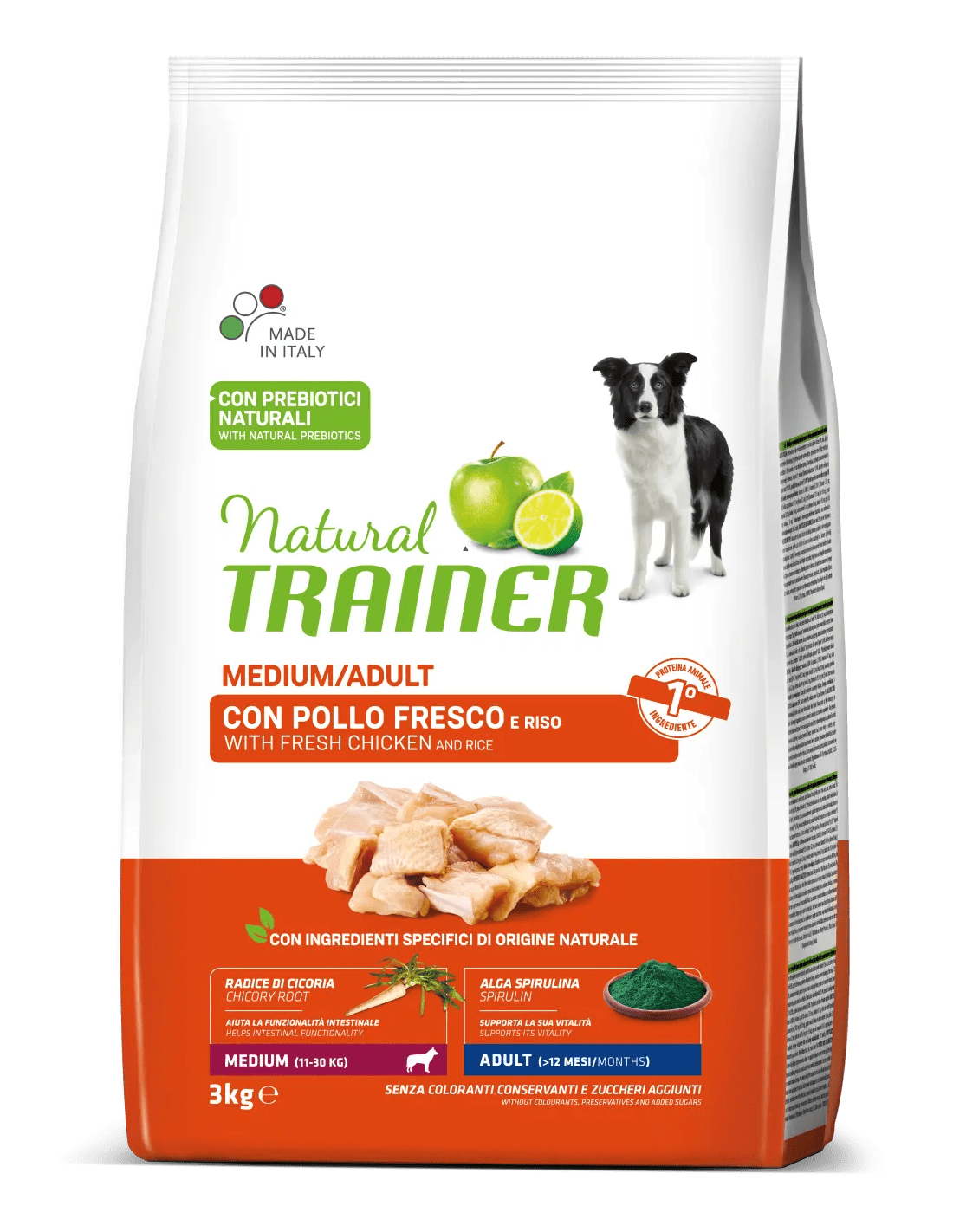 Composizione: pollo fresco 18% , proteine disidratate di pollo e tacchino 18% , granturco , fioretto di granturco , riso 8% , grasso di pollame , piselli disidratati , proteine animali idrolizzate (pollame, maiale, pesce) , polpa di barbabietola* 2% , proteine disidratate di maiale semi di lino* , concentrato secco di radice di cicoria (fonte di inulina)* 0,8% , sostanze minerali , lignocellulosa , mela disidratata in polvere* 0,15% , concentrato di limone in polvere* 0,1% , spirulina (Arthrospira platensis)* 0,1%. , *Ingredienti specifici di origine naturale.