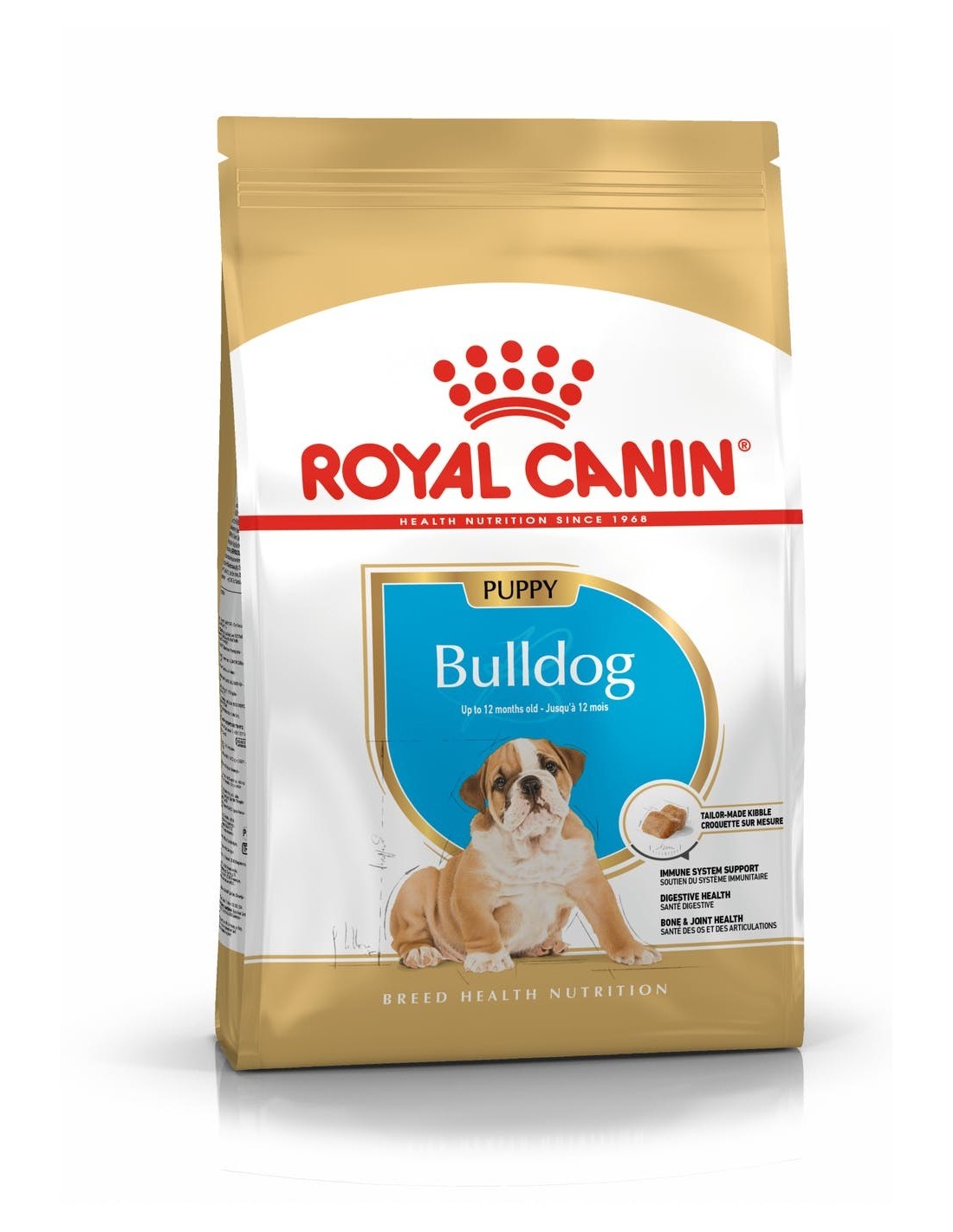 Alimento completo per cani cuccioli di razza bulldog inglese dallo svezzamento compiuto fino a 12 mesi di età.