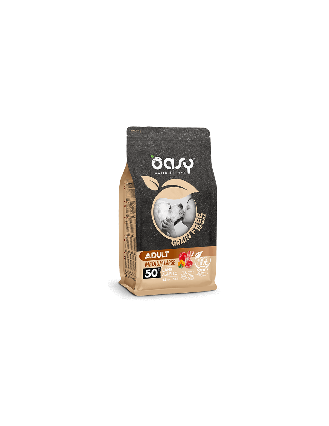 agnello fresco 32%, agnello disidratato 15%, patate, piselli, patata dolce, grasso animale, fegato di agnello idrolizzato 3%, polpa di mele 2,1%, lievito di birra, proteina di patate, semi di lino, farina di carruba, complesso vegetale 0,6% (zucca, spinaci, pomodoro, mirtillo rosso, rosa canina, salvia, origano, rosmarino), olio di pesce, minerali, cicoria 0,1%, mannanoligosaccaridi 0,1%, glucosamina, Yucca schidigera, solfato di condroitina.