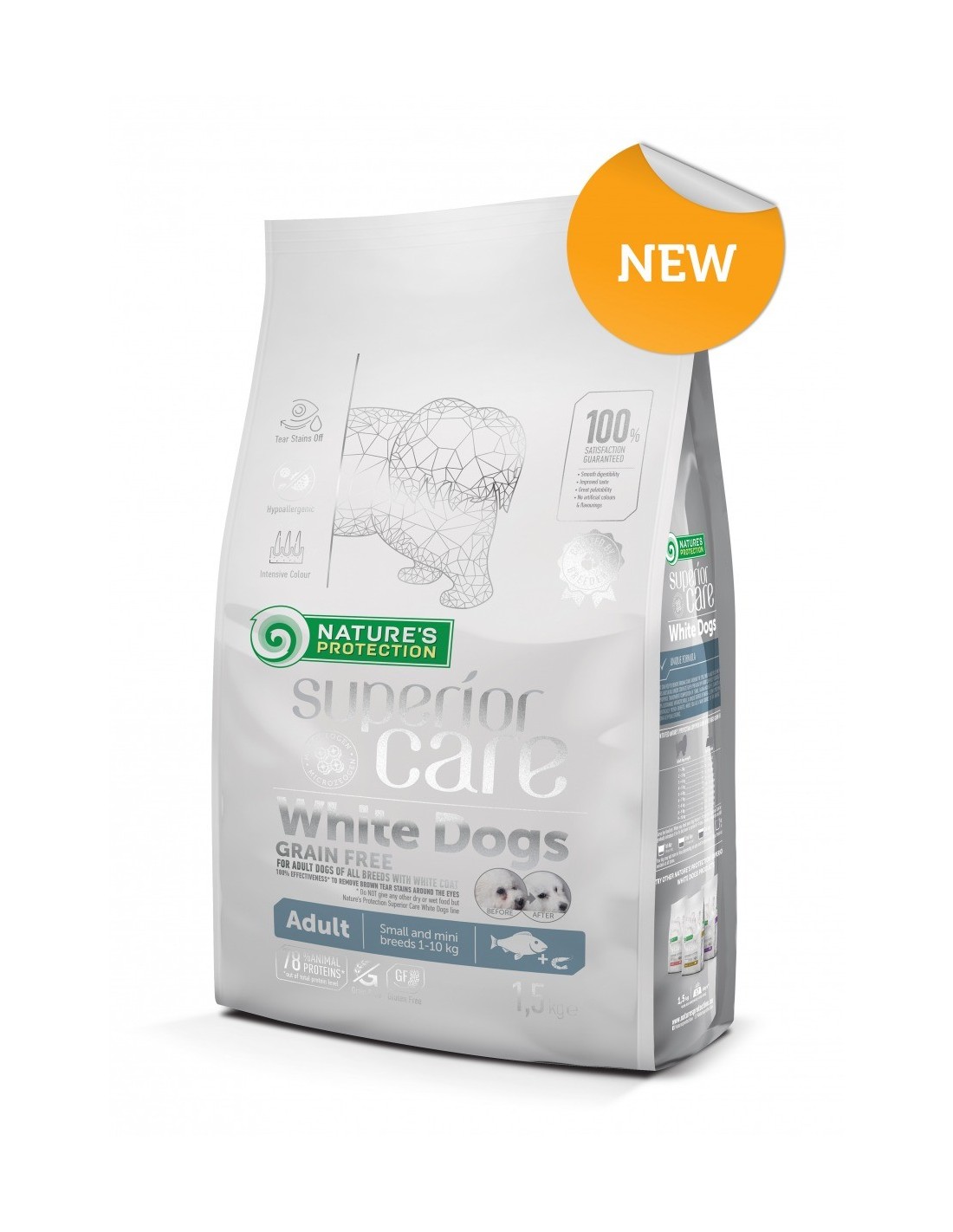 Alimento per cani adulti di taglia piccola ( peso da adulto da 1 a 10kg ) con manto bianco. Esaltazione del pigmento bianco del manto. Aiuta a ridurre la formazione di macchie marroni intorno alla bocca e agli occhi. A base di pesce bianco, non contiene cereali.