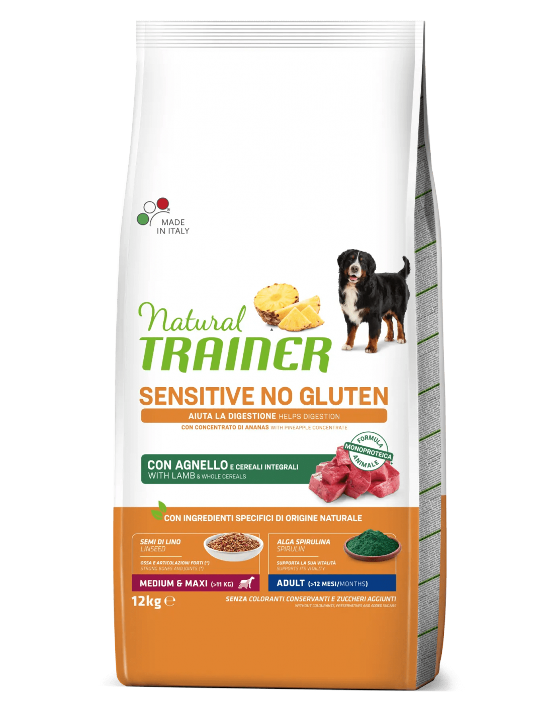 trainer natural sensitive dog 12kg adult med/maxi agnello e cereali