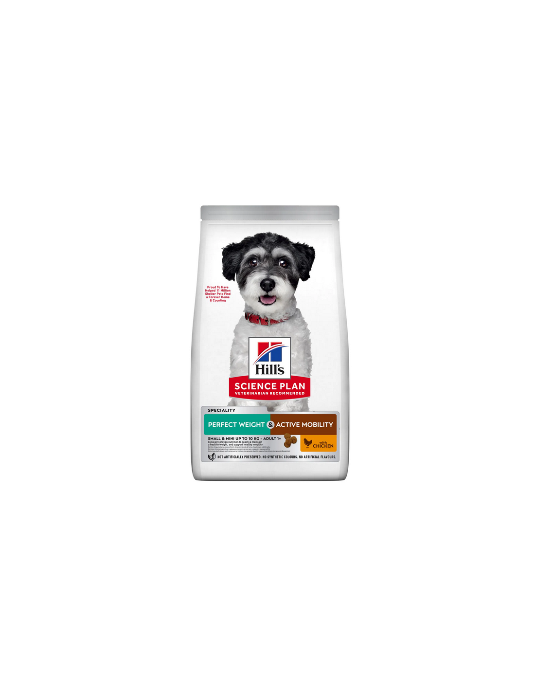 Hill's Science Plan PERFECT WEIGHT & ACTIVE MOBILITY SMALL & MINI ADULT ALIMENTO PER CANI con POLLO è un alimento completo per cani adulti di piccola taglia oltre 1 anno d'età predisposti ad aumentare di peso o in leggero sovrappeso, un fattore di rischio per i problemi di mobilità.