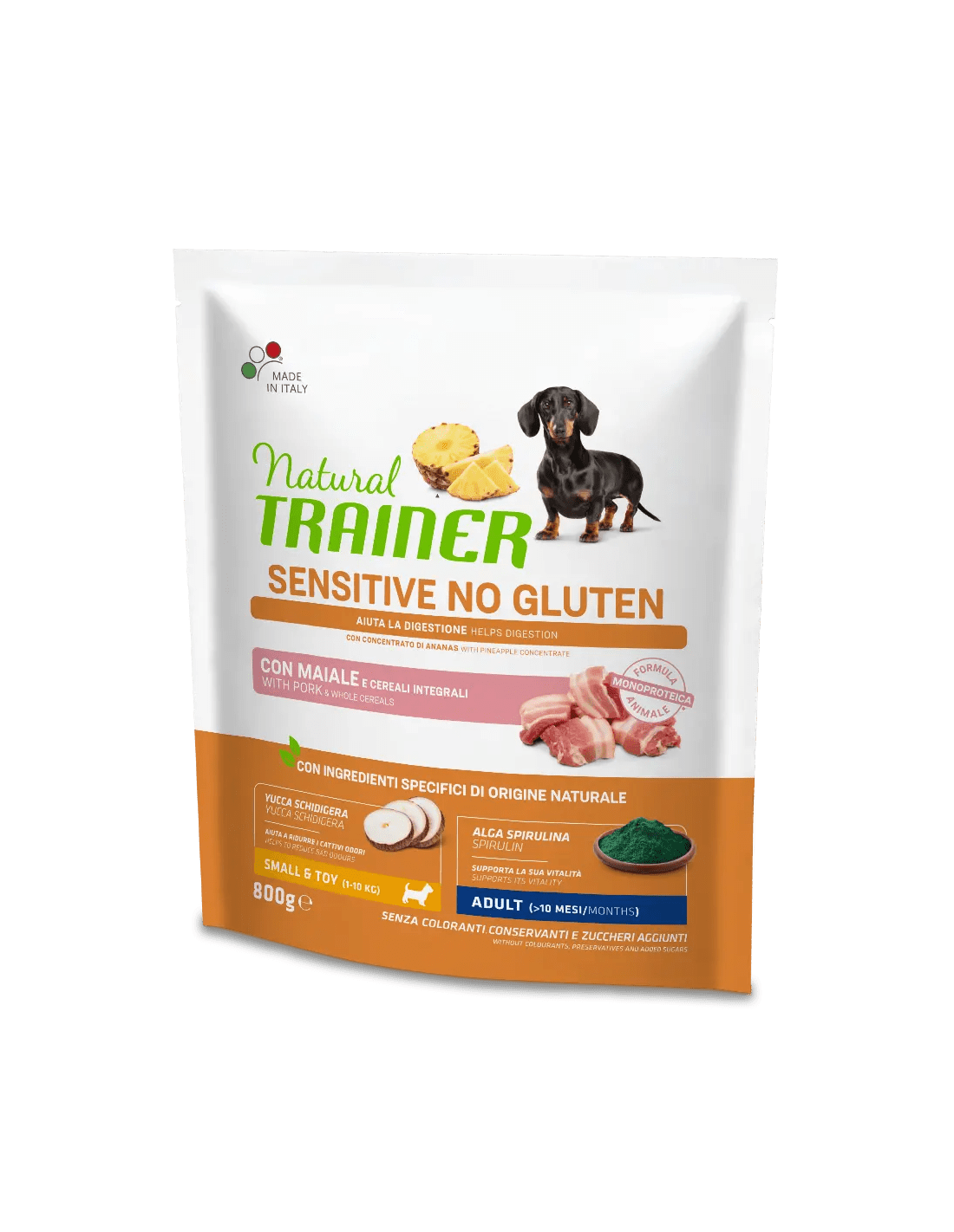 Composizione: proteine disidratate di maiale 21% , granturco integrale 20% , fioretto di granturco , piselli disidratati , farinaccio di riso , strutto , maiale 4% , riso integrale 4% , proteina di pisello idrolizzata , semi di lino* , olio di granturco , riso , sostanze minerali , concentrato secco di radice di cicoria (fonte di inulina)* 0,7% , lignocellulosa , concentrato secco di gambo di ananas* 0,1% , Yucca schidigera disidratata* 0,025% , spirulina (Arthrospira platensis)* 0,02%. , *Ingredienti specifici di origine naturale.