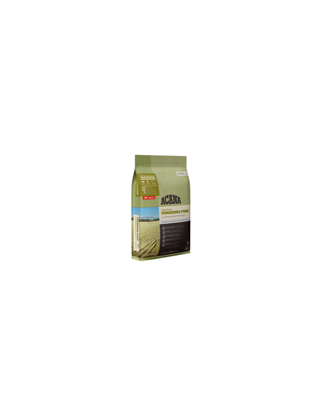 ACANA Yorkshire Pork contiene unicamente la fonte proteica del maiale presente nelle proporzioni della preda intera (WholePrey) che comprendono carne, organi e cartilagine.