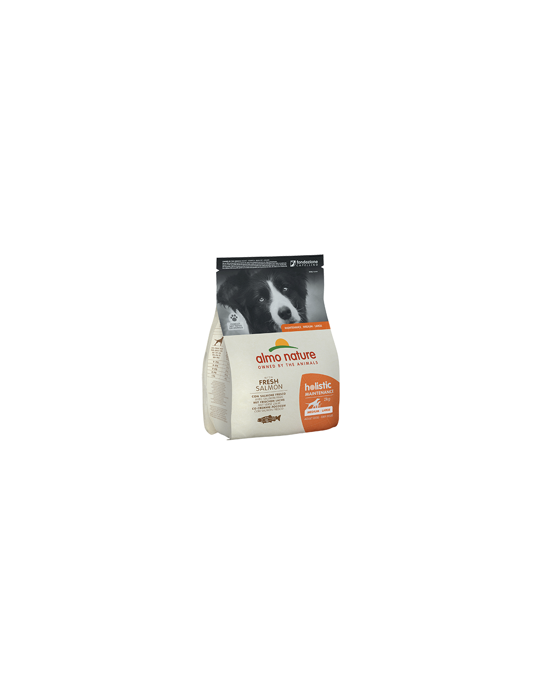 Salmone fresco* 26%, granturco**, riso, farina di riso integrale, tonno disidratato 10%, pollo disidratato 9,5%, grasso di pollo, proteine animali idrolizzate, polpa di barbabietola, lievito, sostanze minerali, mannano-oligo-saccaridi 0,1%, inulina di cicoria fonte di FOS 0,1%. *Fonte naturale di omega 3.**No OGM.