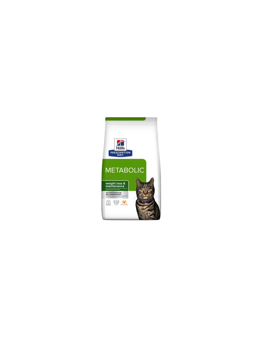 Hill's Prescription Diet Metabolic per gatto è un alimento secco dietetico a base d pollo per gatti adulti, la cui efficacia nell'aiutare il gatto a perdere peso o a mantenere il peso forma è stata clinicamente testata. Questo cibo ha una bassa percentuale di grassi e conferisce al gatto una sensazione di sazietà dopo i pasti. Sono crocchette dietetiche, un alimento bilanciato per gatti sovrappeso sviluppato per la gestione dei problemi di peso del gatto e il mantenimento del peso forma una volta terminato un regime dietetico. Metabolic è una svolta nutrizionale, provato clinicamente sia per una perdita di peso sicura, che per il mantenimento del peso raggiunto. L'81% dei gatti ha perso peso a casa, con grande successo. Inoltre con Hill's Prescription Diet Metabolic Pollo per gatto non è necessario misurare il cibo con estrema accuratezza. Questo alimento gustoso e completo è un'ottima scelta per il tuo gatto con problemi di peso in eccesso! Grazie al complesso di componenti nutritivi scientificamente formulato per bruciare i grassi, l'organismo del gatto viene incentivato a smaltire i grassi in eccesso. Contiene un complesso di componenti nutritivi scientificamente formulato per attivare il metabolismo a bruciare i grassi. Con importanti antiossidanti per interrompere il ciclo infiammatorio associato all'obesità. Hill's Prescription Diet Gatto Metabolic Pollo aiuta il tuo felino domestico a sentirsi sazio e soddisfatto tra un pasto e l'altro anche durante i regimi dietetici. Si raccomanda di consultare sempre il proprio medico veterinario di riferimento prima di somministrare o prolungare la somministrazione di un alimento dietetico.