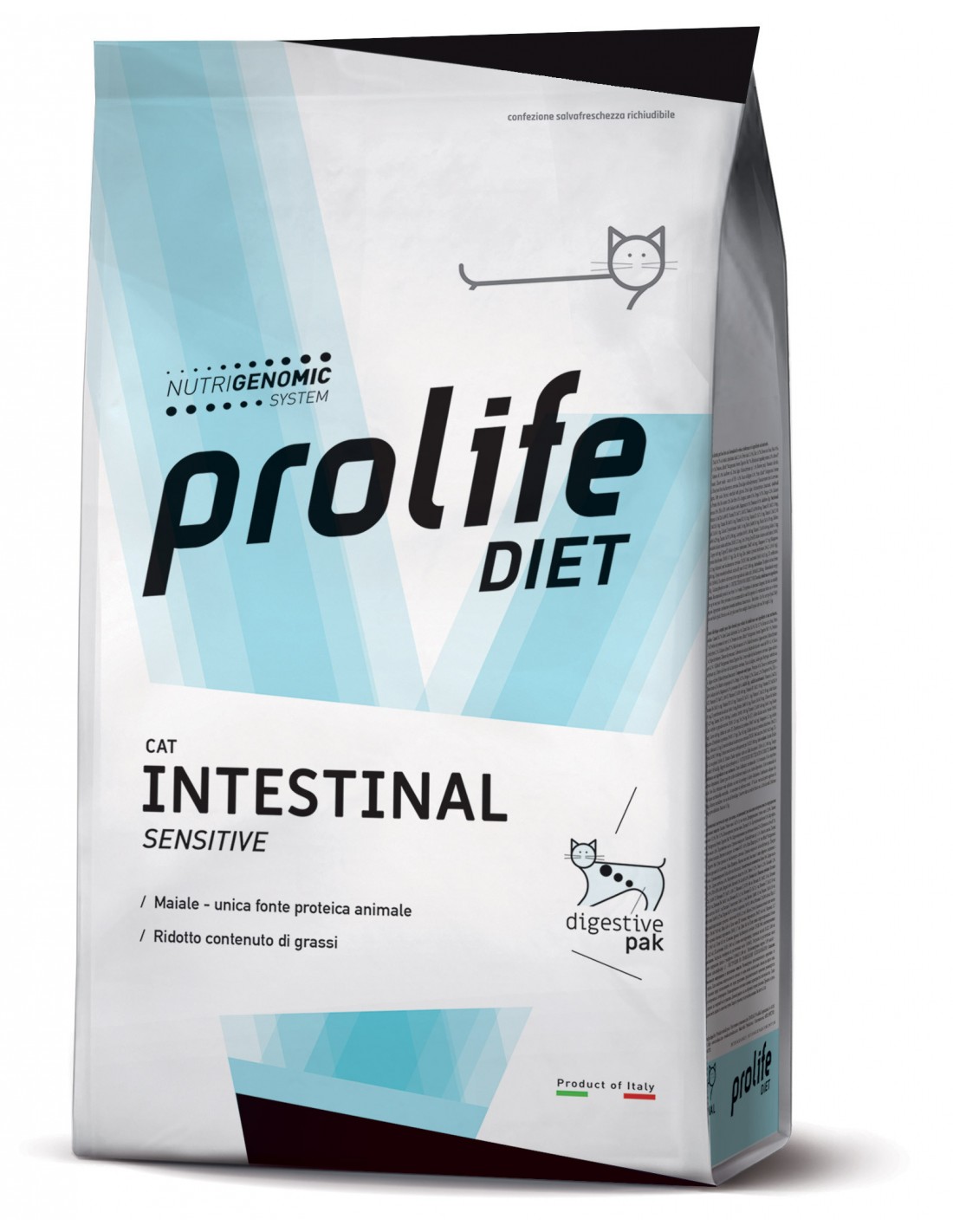 Prolife Intestinal è l'alimento dietetico completo e bilanciato studiato per il gatto che presenta patologie gastrointestinali. Grazie a ingredienti altamente digeribili, ai prebiotici FOS e MOS e all'accresciuto livello di elettroliti, aiuta a regolarizzare il transito intestinale, rinforzando l'apparato digerente. L'elevata appetibilità delle carni, unito a una buona dose di energia, facilita l'assunzione dell'alimento in modo da non sovraccaricare l'organismo nella delicata fase della digestione.