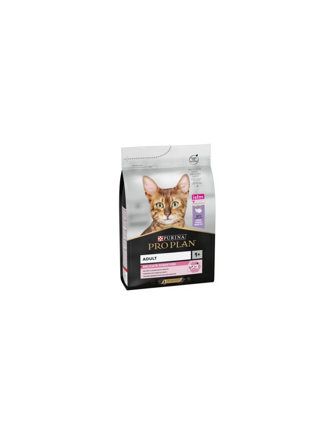 PURINA PRO PLAN ADULT 1+ DELICATE DIGESTION RICCO IN TACCHINO è un alimento completo per gatti adulti con una digestione sensibile o un appetito esigente.