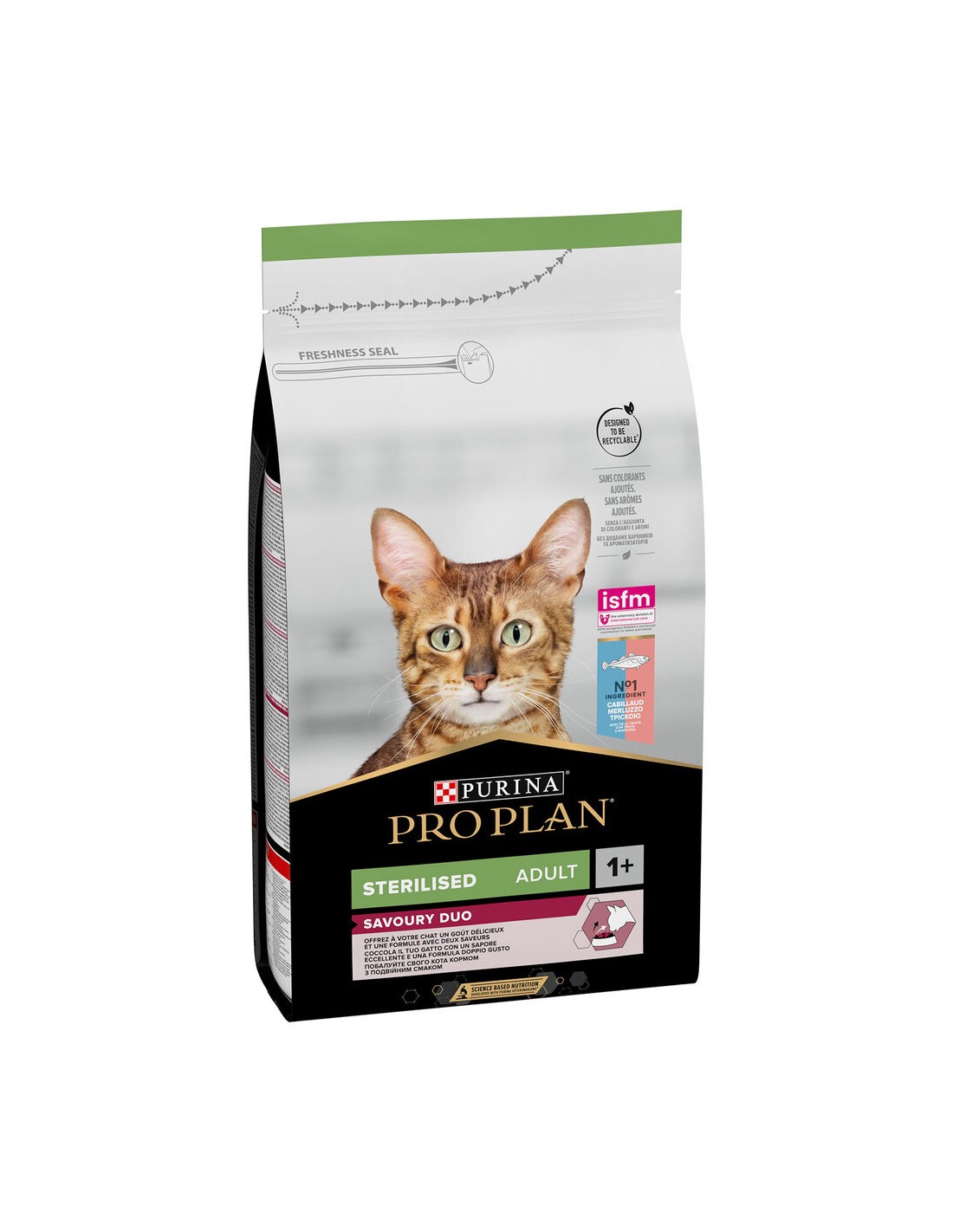 PURINA PRO PLAN STERILISED ADULT 1+ SAVOURY DUO RICCO IN MERLUZZO E TROTA è un alimento completo per gatti adulti sterilizzati. Coccola il tuo gatto con un sapore eccellente e una formula doppio gusto.