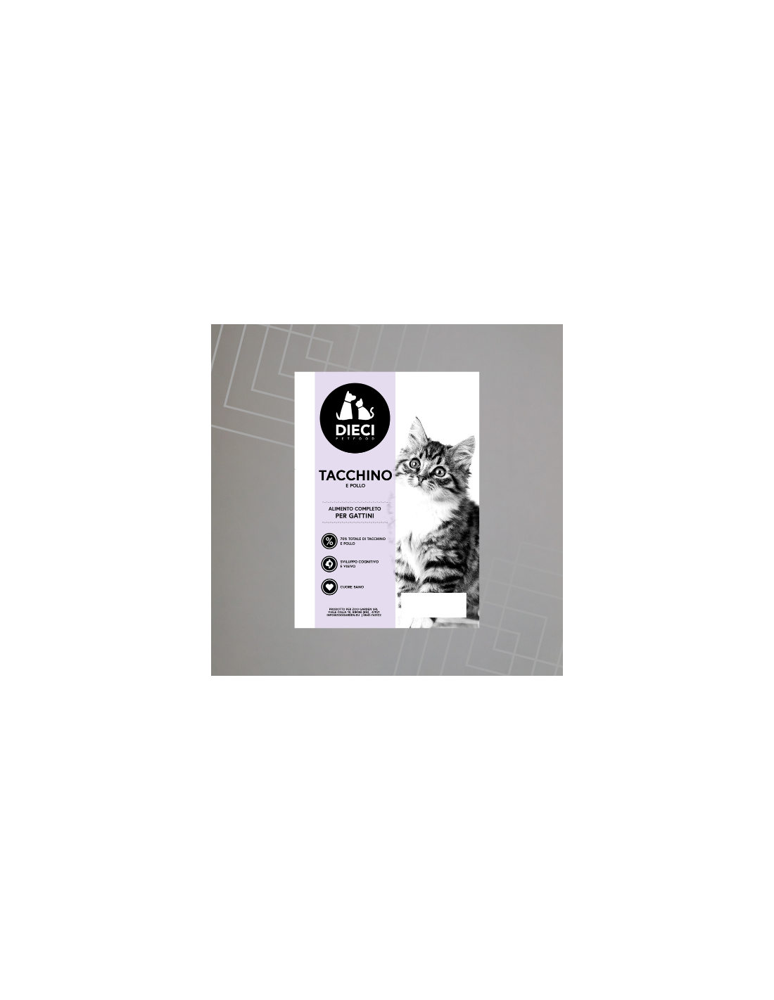 - 70% totale di Tacchino e Pollo Ricco di aminoacidi essenziali, vitamine e minerali per sostenere la crescita ed uno sviluppo muscolare sano nei gattini.