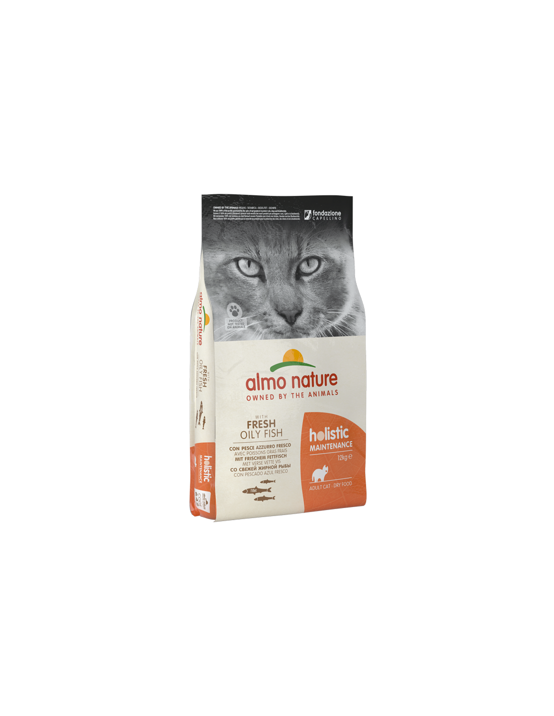 Acciuga fresca* 26%, granturco**, pollo disidratato 19,2%, riso, grasso di pollo, proteine di granturco**, proteine animali idrolizzate, farina di riso integrale, sostanze minerali, mannano-oligo-saccaridi 0,1%, inulina di cicoria fonte di FOS 0,1%. *Fonte naturale di omega 3. **No OGM.