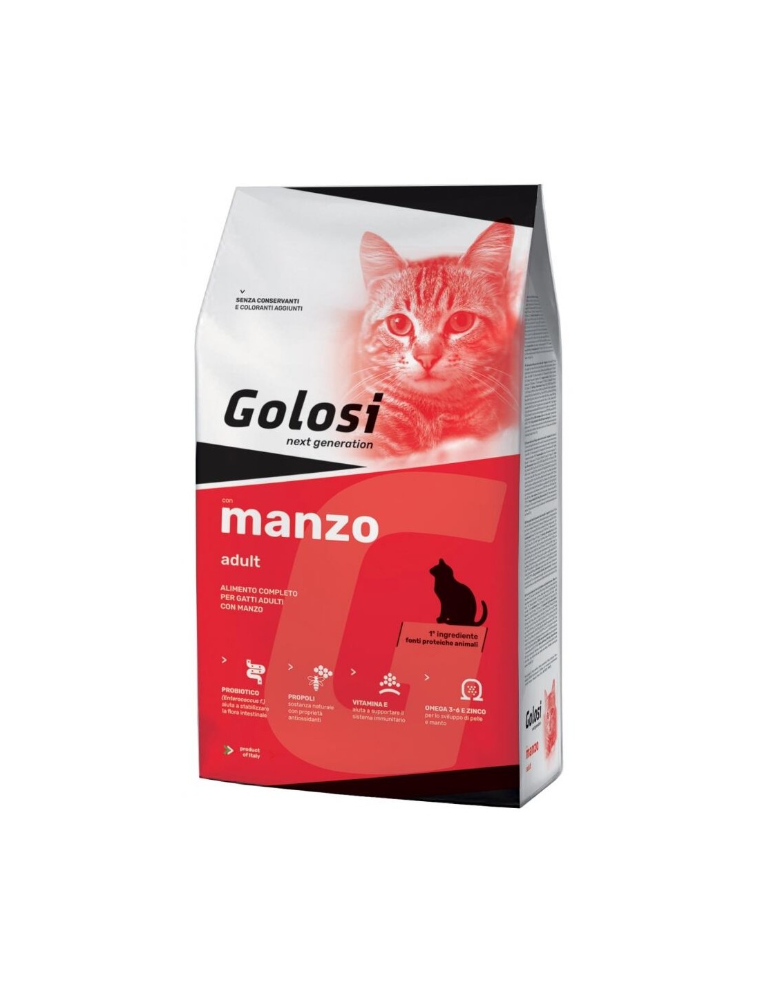 Golosi con manzo è la soluzione nutrizionale ideale per il gatto adulto: l’inclusione di manzo rende l’alimento particolarmente appetibile e apporta proteine a elevato valore biologico. Gli omega 3-6 e lo zinco sono validi alleati per pelle e manto mentre il selenio contribuisce a proteggere l’integrità dei tessuti. L’ampia integrazione di vitamine e minerali offre inoltre un importante supporto per l’organismo contribuendo a limitare i processi di ossidazione, per un gusto a tutto benessere.