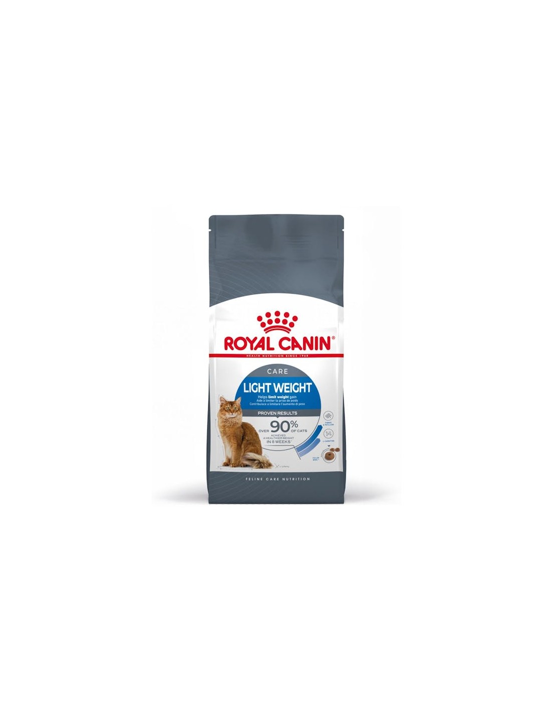 Risultati provati: l’utilizzo esclusivo di Light weight care soddisfa l’appetito del gatto e contribuisce a ridurre le calorie consumate del 17%*. *Studio interno Royal Canin, 2006 - Consumo spontaneo giornaliero confrontato con un alimento simile per gatti, di medio contenuto calorico.