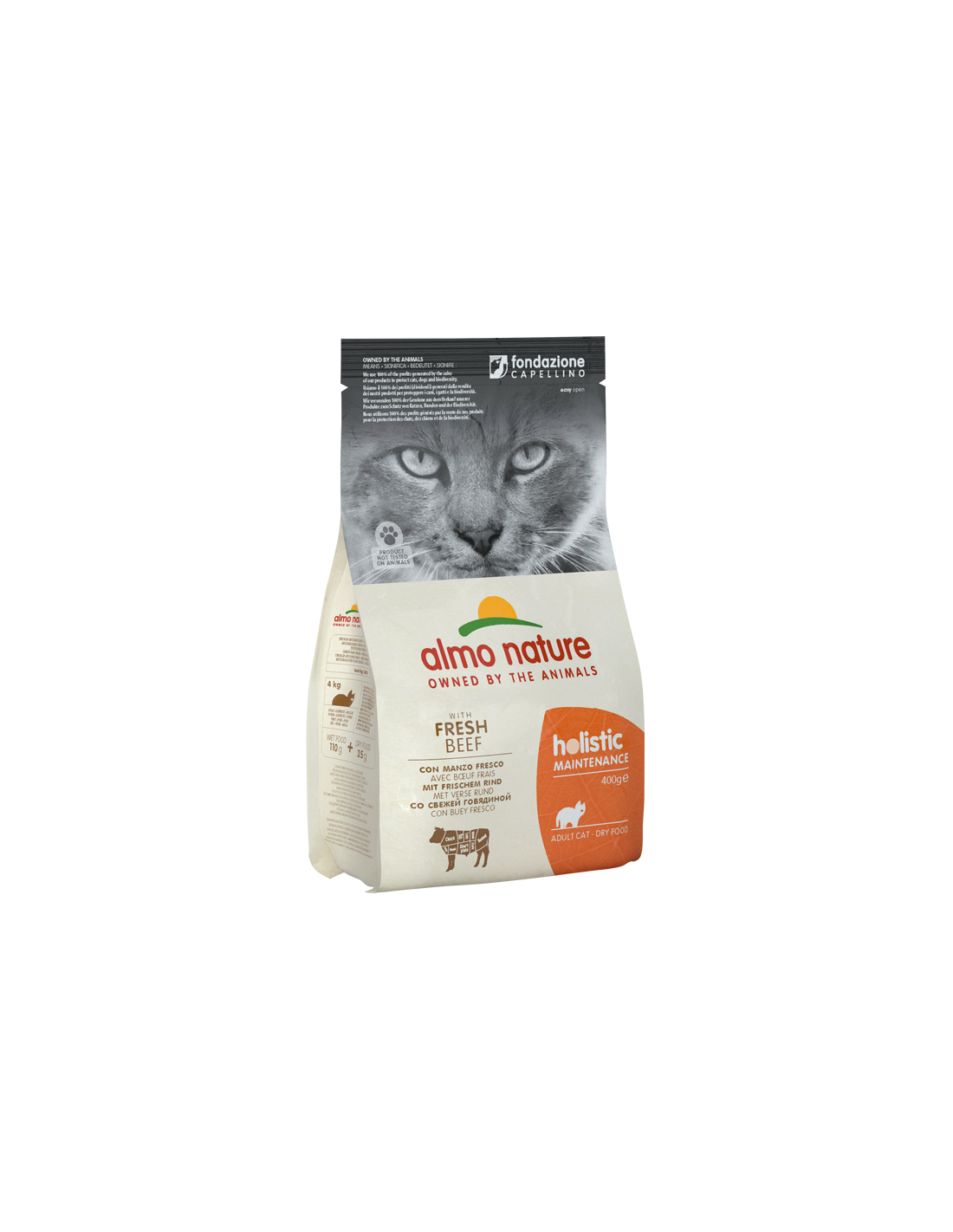 Manzo 31,3% (manzo fresco 26%, manzo disidratato 5,3%), granturco*, pollo disidratato 16,5%, riso, farina di riso integrale, proteine animali idrolizzate, grasso di pollo, olio di salmone**, sostanze minerali, mannano-oligo-saccaridi 0,1%, inulina di cicoria fonte di FOS 0,1%. *No OGM. *Fonte naturale di omega 3.
