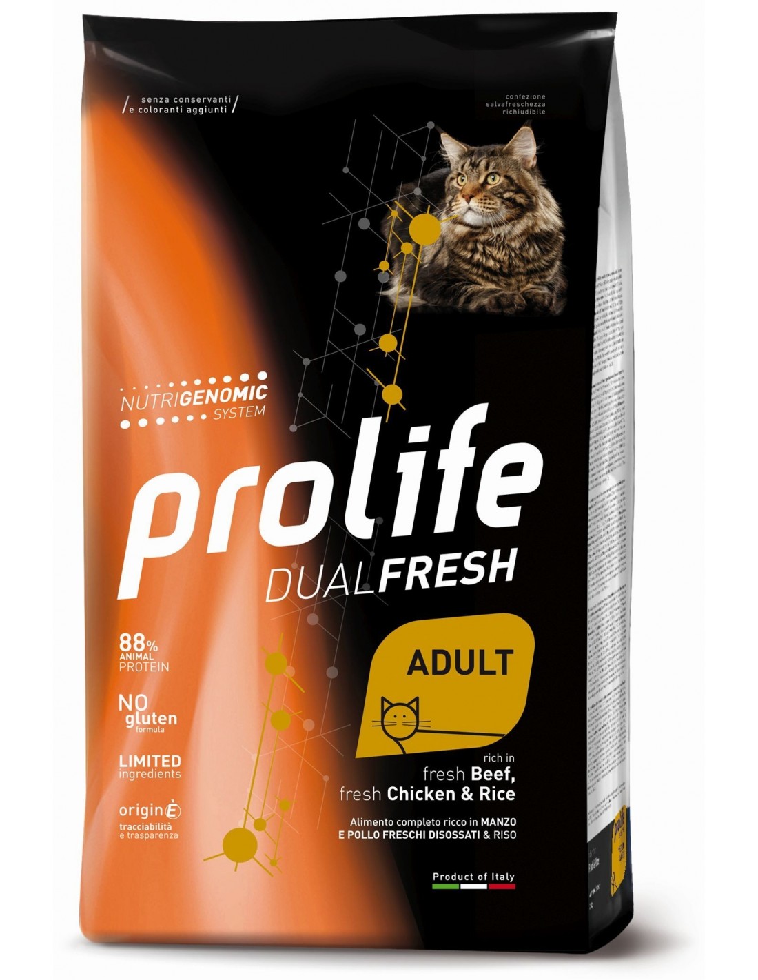 Manzo 30% (di cui Manzo fresco disossato* 20%, Manzo disidratato 10%), Riso* 22,5%, Pollo 20,4% (di cui Pollo fresco disossato* 14%, Pollo disidratato 6,4%), Maiale disidratato, Sorgo bianco*, Grasso di pollo, Proteine animali idrolizzate, Alltech® Nutrigenomic System Cats 1,2%, Cellulosa Arbocel® 0,5%, Sostanze minerali, Inulina di cicoria - fonte di FOS - 0,1%.