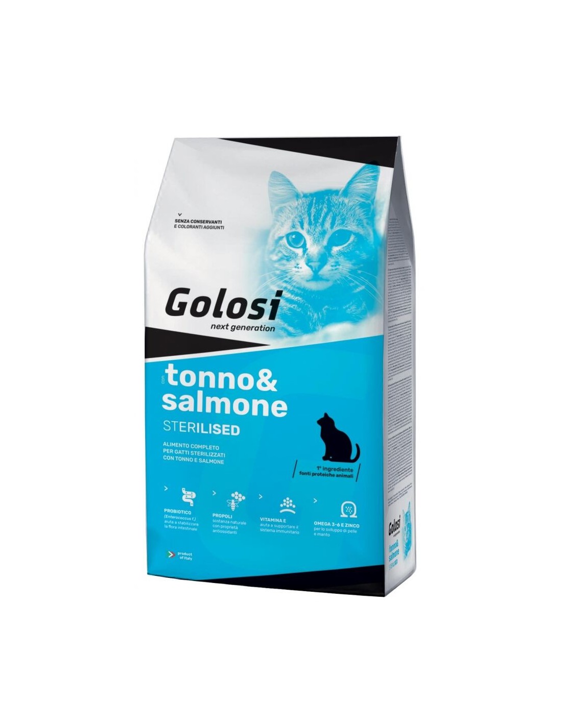 Golosi con tonno & salmone sterilised è la soluzione nutrizionale con adeguati livelli di magnesio ideale per il gatto sterilizzato: l’inclusione di tonno e salmone rende l’alimento leggero e appetibile e apporta proteine a elevato valore biologico. Il selenio in forma organica contribuisce a proteggere l’integrità dei tessuti mentre gli omega 3-6 e lo zinco sono validi alleati per pelle e manto: l’ampia integrazione di vitamine e minerali offre inoltre un importante supporto per l’organismo contribuendo a limitare i processi di ossidazione, per un gusto a tutto benessere.