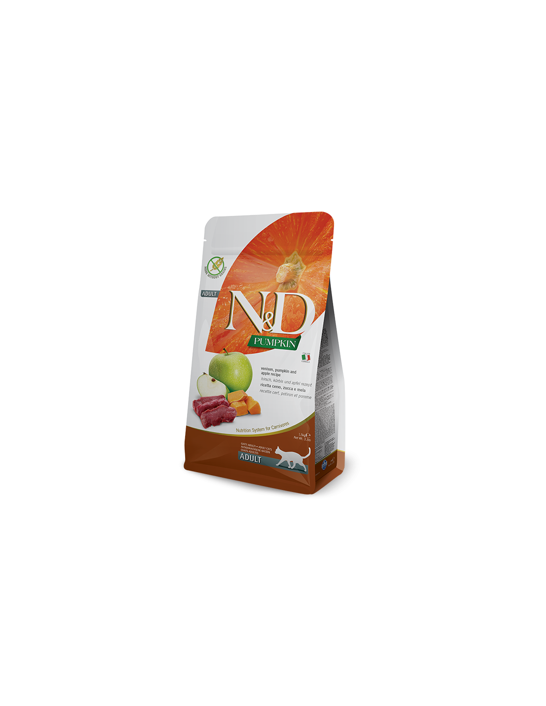 composizione: cervo (28%), proteine di cervo disidratate (26%), amido di piselli, grasso di pollo, zucca disidratata (5%), uova essiccate, aringa, proteina di aringa disidratata, olio di pesce (da aringa), carote essiccate, farina di erba medica, inulina, fruttoligosaccaridi, estratto di lievito (fonte di manno-oligo-saccaridi), mela essiccata (0.5%), mirtillo essiccato, melagrano essiccato, spinaci essiccati, bucce e semi psillio (0.3%), arancia dolce essiccata, cloruro di sodio, lievito di birra essiccato, curcuma (0.2%), estratto di aloe vera.