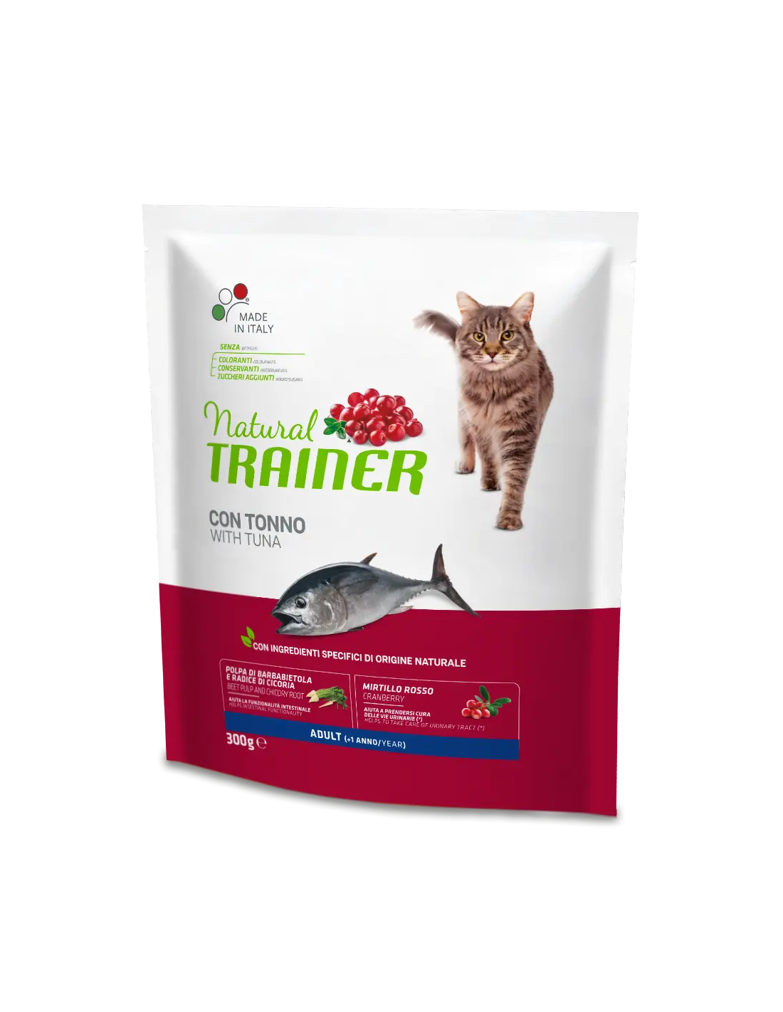 Composizione: pollo fresco , granturco , riso , proteine disidratate di pollo e tacchino , proteina di granturco , proteine disidratate di tonno 7% , piselli disidratati , strutto , tonno 4% , proteine disidratate di manzo , fioretto di granturco , polpa di barbabietola* 2% , proteine animali idrolizzate (pollame, maiale, pesce) , semi di lino* , proteina di pisello , concentrato secco di radice di cicoria (fonte di inulina)* 0,8% , sostanze minerali , olio di granturco , mirtillo rosso disidratato* 0,02%. , *Ingredienti specifici di origine naturale.