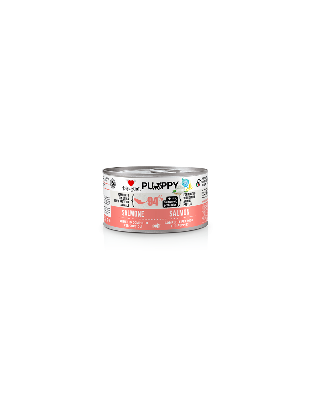 Disugual Puppy è Made in Italy ed è preparato solo con materie prime selezionate e aggiunta di prebiotici e antiossidanti, utili per la funzione intestinale.