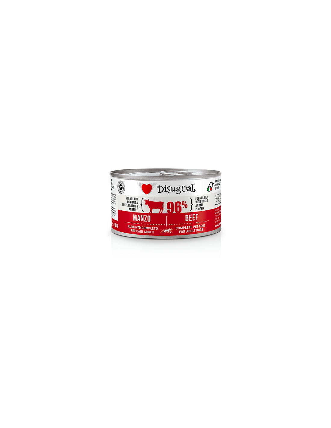 Ogni scatoletta contiene il 96% di carne e il restante 4% è dato da gelatine vegetali, vitamine, sali minerali per renderlo un vero pasto completo.