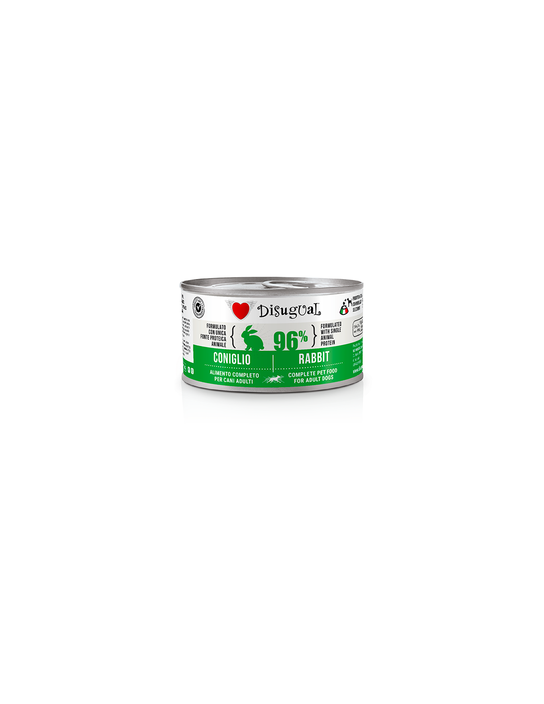 Ogni scatoletta contiene il 96% di carne e il restante 4% è dato da gelatine vegetali, vitamine, sali minerali per renderlo un vero pasto completo.