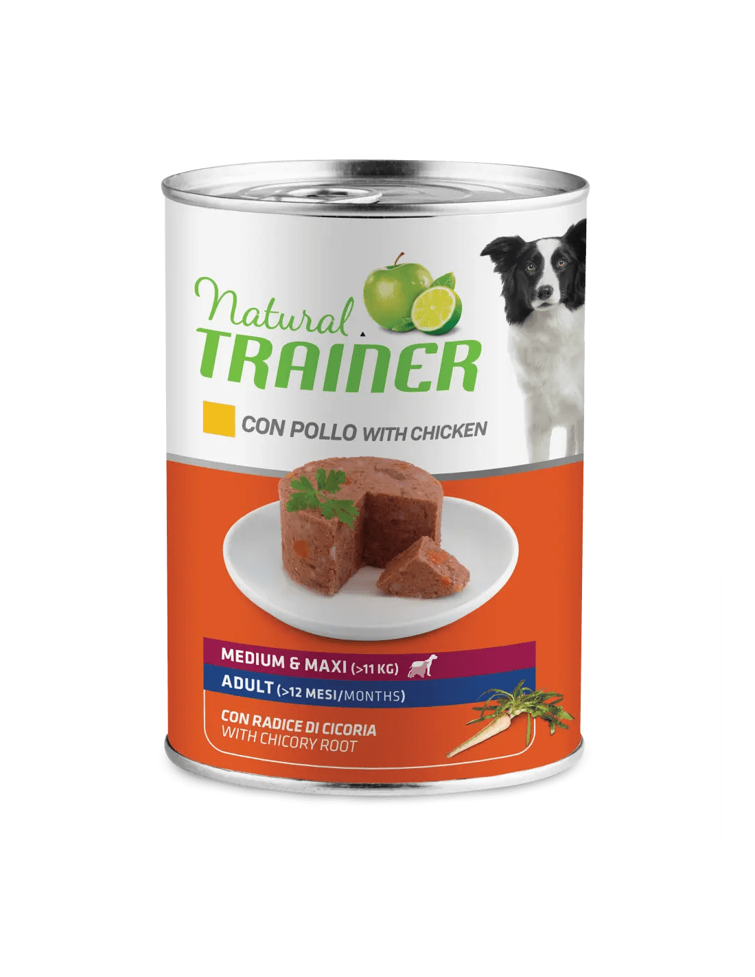 Composizione: pollo 16% , maiale , fegato di maiale , carote , riso , sostanze minerali , olio di girasole , farina di riso fermentato , concentrato secco di radice di cicoria (fonte di inulina)* 0,15% , mela disidratata in polvere* 0,01% , concentrato di limone in polvere* 0,01%. , *Ingredienti specifici di origine naturale.