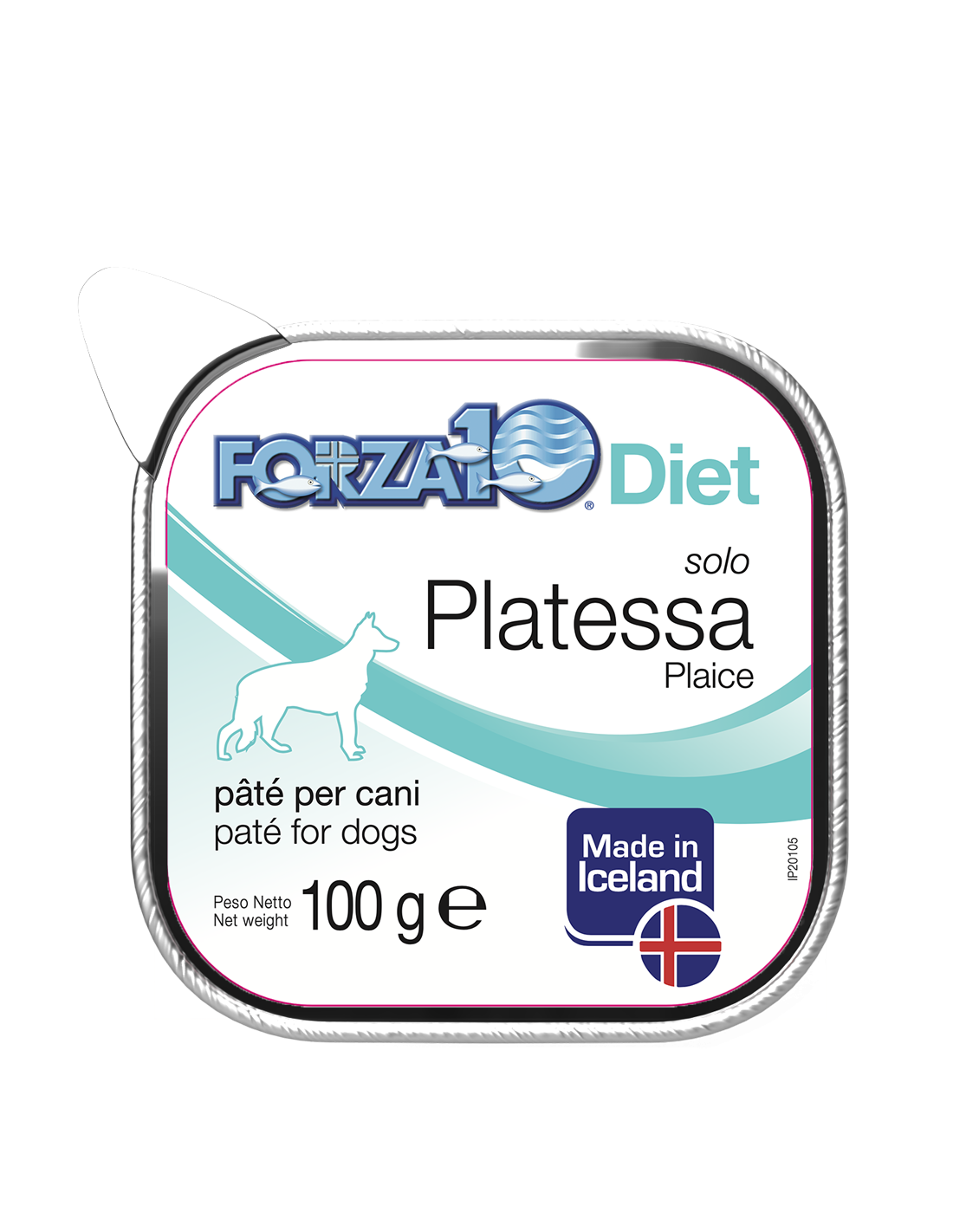 Forza10 Solo Diet Platessa è un alimento dietetico complementare per cani sano, nutriente e gustoso. La principale fonte di proteine del mangime è la platessa, pescata in mare aperto; questo tipo di pesca assicura l'ottima qualità del pesce e permette di mantenerne il sapore ricco che la caratterizza, perché l'animale è attivo ed in salute, e la carne non è intaccata da sostanze chimiche. Il mangime è indicato nel caso di intolleranze alimentari - o sospette intolleranze - del tuo pelosetto.