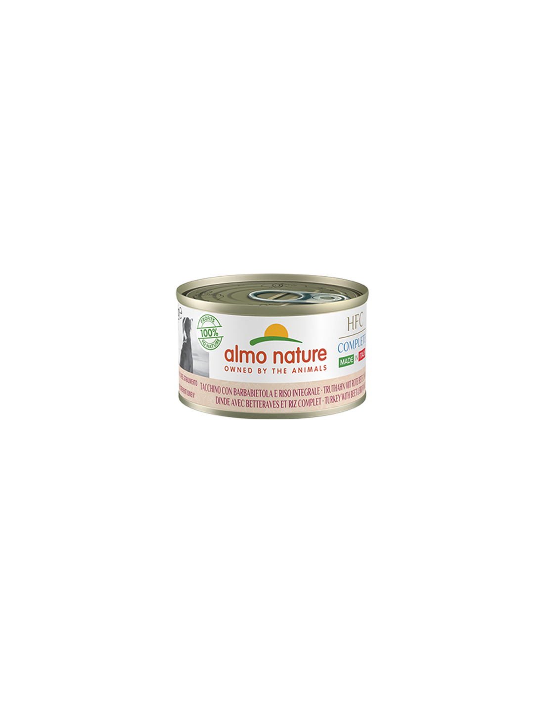 Tacchino 58% (carne 48%, fegato 10%), riso integrale 8%, barbabietola 4%, sedano, tarassaco, basilico.