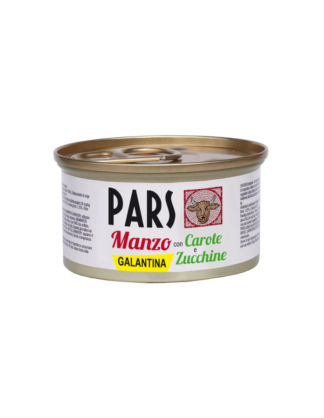 Composizione. Manzo 53%, riso integrale, carote 4%, zucchine 4%, mela, olio di girasole, basilico, saccarosio. Additivi. Additivi nutrizionali: Vitamina A 1200 UI, Vitamina D3 140 UI, Vitamina E 10 mg/kg, 3b405 (Cu 1,5 mg/kg). Componenti analitici. Umidità 76,0%, Proteina 8,9%, Grassi grezzi 6,0%, Fibra grezza 0,9%, Ceneri grezze 1,9%. Modalità d'uso e razioni giornaliere indicative. MAMMIFERI CARNIVORI: circa 60 g per ogni kg di peso corporeo in abbinamento ad altri alimenti PARS. MAMMIFERI ONNIVORI: utilizzare miscelato con riso e verdure cotte, o con PARS riso soffiato, PARS riso soffiato con verdure e frutta. Quantità giornaliera da 50 g a oltre per ogni Kg di peso corporeo. UCCELLI, RETTILI CARNIVORI: regolarsi in base all'esperienza acquisita o sentire il parere del veterinario. Servire a temperatura ambiente. Vi ricordiamo che i fabbisogni possono variare notevolmente in base al singolo soggetto (temperamento, età, attività, metabolismo, ecc.) ed alla temperatura ambientale. Lasciare sempre una ciotola d'acqua fresca a disposizione.