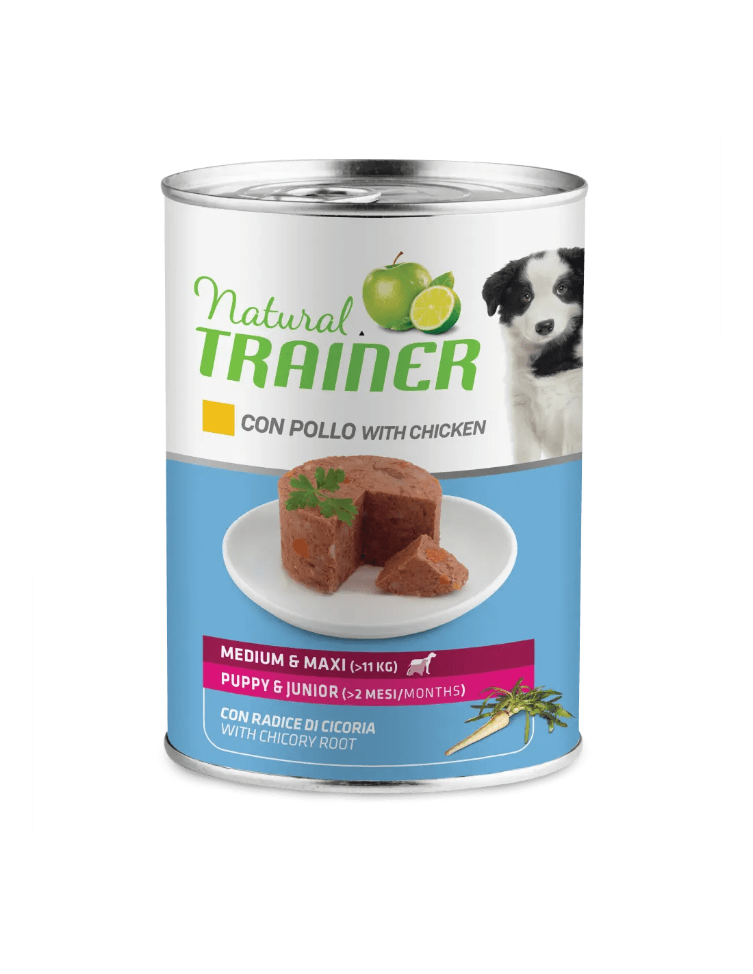 Composizione: pollo 16% , maiale , fegato di maiale , carote , riso , sostanze minerali , olio di girasole , proteina di riso , farina di riso fermentato , concentrato secco di radice di cicoria (fonte di inulina)* 0,15% , mela disidratata in polvere* 0,01% , concentrato di limone in polvere* 0,01%. , *Ingredienti specifici di origine naturale.