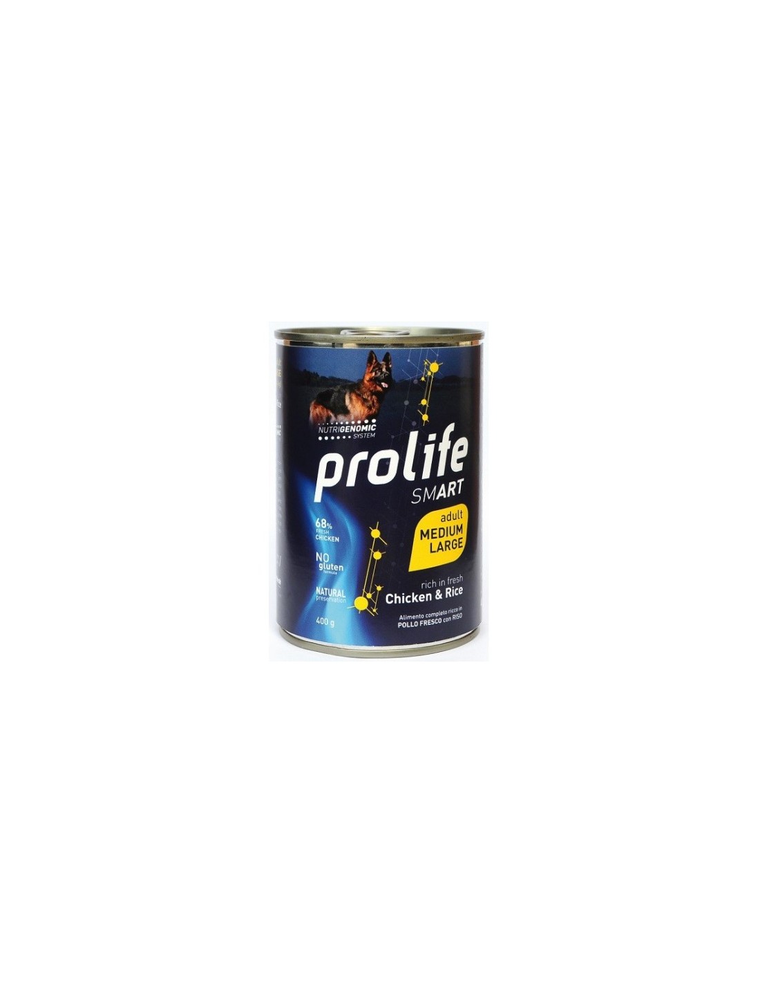 Pollo fresco 68%, Riso 4%, Alltech® Nutrigenomic System 1,2%, Sostanze minerali, Olio di semi di lino 0,1%, Fruttoligosaccaridi (FOS) 0,1%, Olio di semi di girasole, Glucosamina 0,09%, Solfato di condroitina 0,03%.