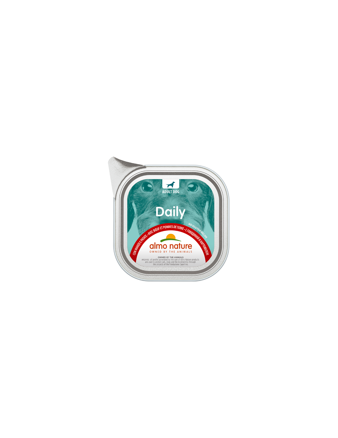 Alimento umido per cani in una comoda vaschetta