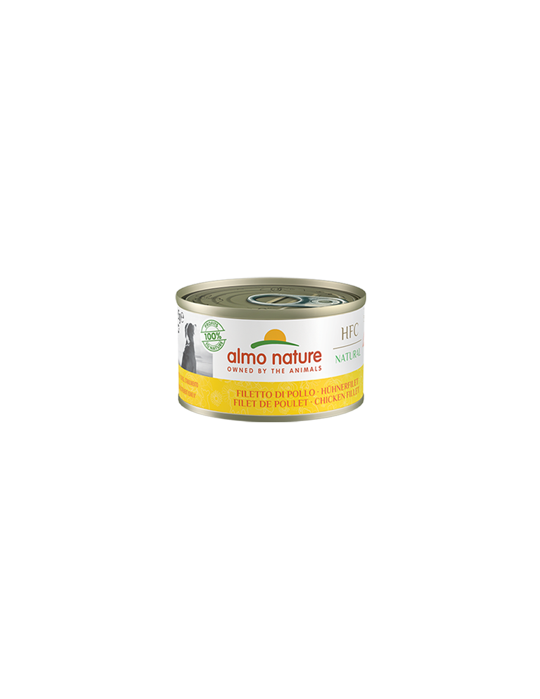 Filetto di pollo 55%, brodo di pollo 42%, riso 3%.