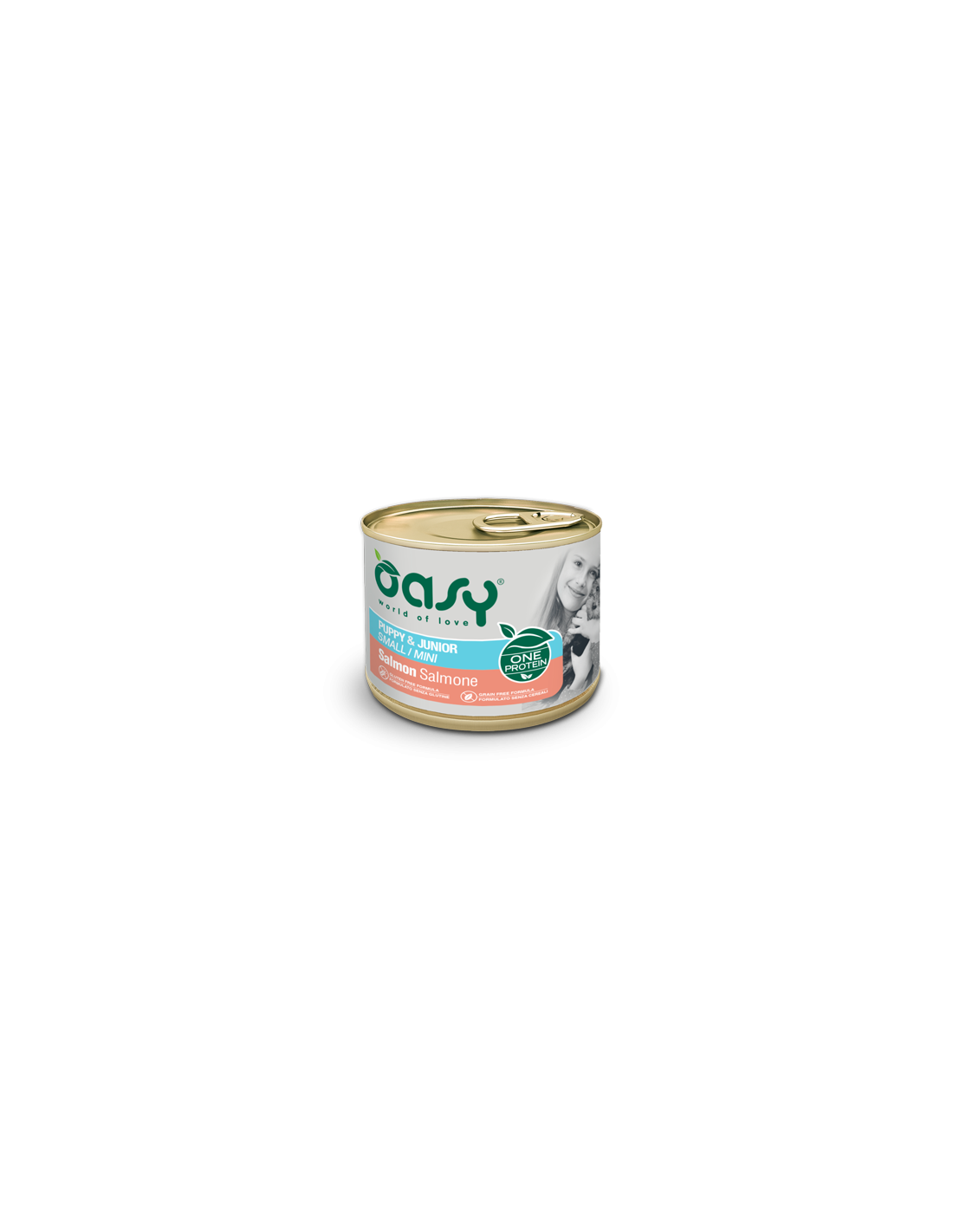Salmone 94%, patate 4,1%, oli e grassi vegetali, fruttoligosaccaridi 0,1%.