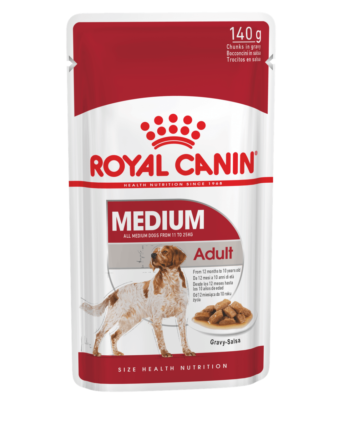 Alimento completo per cani adulti di taglia media (tra 11 e 25 kg), da 12 mesi a 10 anni di età.