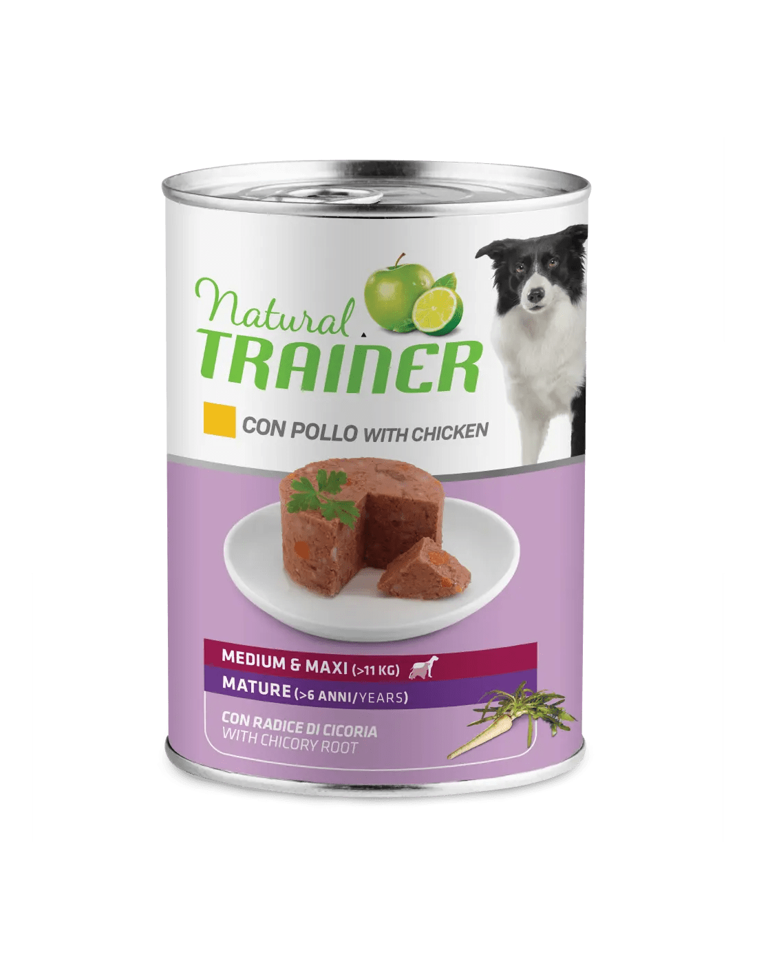 Composizione: pollo 16% , maiale , fegato di maiale , carote , riso , sostanze minerali , olio di girasole , farina di riso fermentato , concentrato secco di radice di cicoria (fonte di inulina)* 0,15% , mela disidratata in polvere* 0,01% , concentrato di limone in polvere* 0,01%. , *Ingredienti specifici di origine naturale.