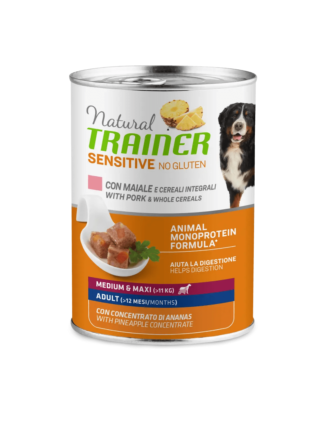 Composizione: maiale 34% , granturco integrale 4% , riso , carote , sostanze minerali , olio di girasole , riso integrale 1% , farina di riso fermentato , concentrato secco di gambo d'ananas* 0,1%. , *Ingrediente specifico di origine naturale.