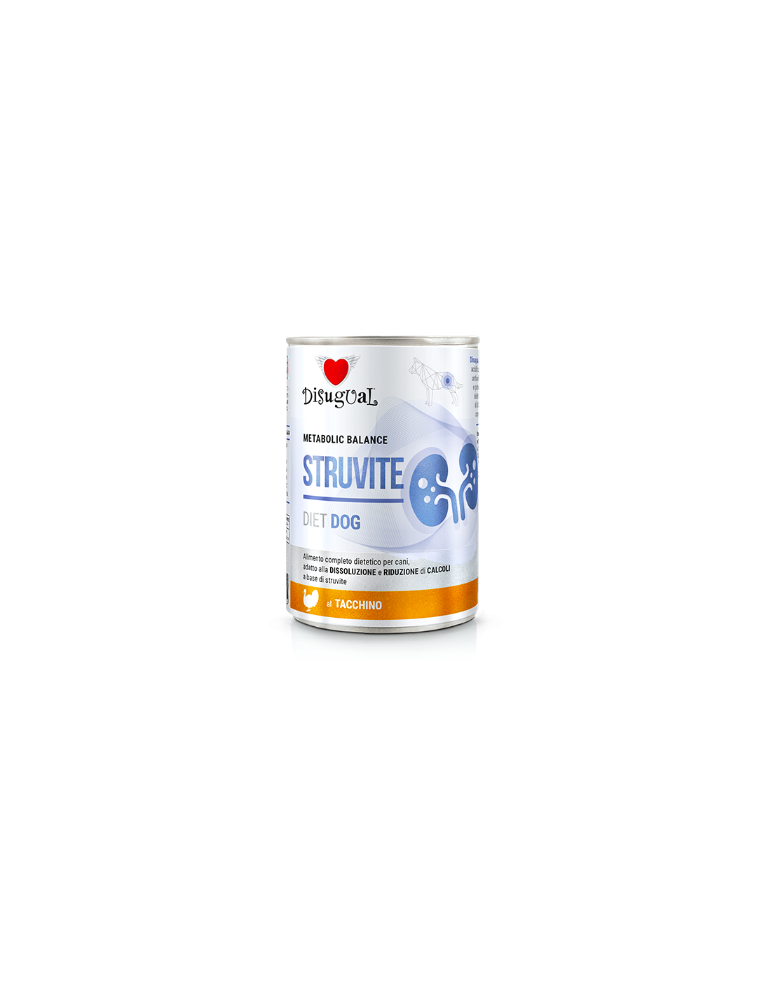 Disugual STRUVITE è un alimento completo per cani con proprietà di acidificazione delle urine, integrato con prebiotici (XOS e MOS) e polifenoli antiossidanti estratti da Vitis vinifera. La dieta ha un ridotto tenore di magnesio e potassio per evitare la formazione di cristalli di struvite. È formulata con un ridotto contenuto di proteina grezza di alta qualità, al fine di ridurre l’incidenza di infezioni batteriche nel tratto urinario. Infine, l’inclusione di olio di salmone completa la ricetta, garantendo l’assunzione di acidi grassi omega-3.