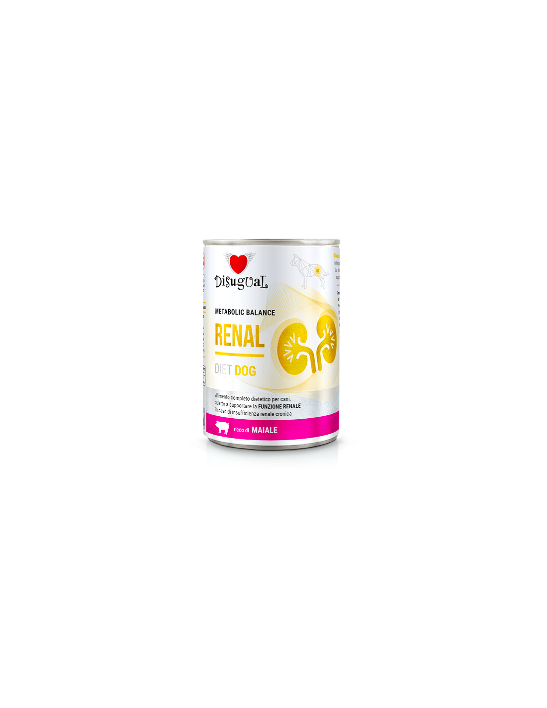 Disugual RENAL è un alimento bilanciato per apporto di vitamine e minerali, integrato con prebiotici (XOS e MOS) e polifenoli estratti da Vitis vinifera. La dieta ha un ridotto tenore di fosforo e proteina grezza di alta qualità per supportare la funzione renale. Inoltre, è addizionato di olio di salmone, fonte naturale di preziosi acidi grassi omega-3.
