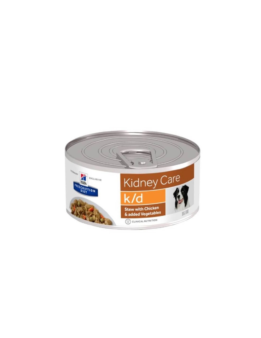 Hill's Prescription Diet Canine K/D con pollo e verdure è una alimentazione completa per il mantenimento della funzione renale nelle malattie renali croniche o temporanee e per il supporto alle articolazioni nell'osteoartrite nei cani adulti. Questo alimento dietetico ha un basso contenuto di fosforo, un contenuto proteico limitato ma di alta qualità, e un alto livello di EPA e di tutti gli acidi grassi Omega-3, e di vitamina E.