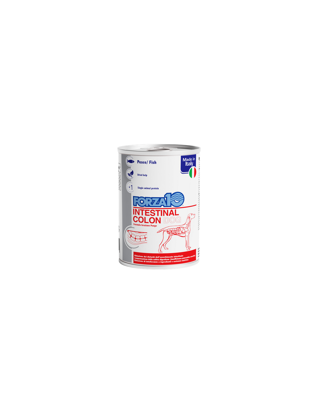 Forza 10 Intestinal Colon ActiWet per cani è un alimento dietetico completo umido per cani, studiato per far fronte a disturbi acuti dell’assorbimento intestinale e alla cattiva digestione. L’alimento è formulato con ingredienti selezionati e altamente digeribile ed è indicato anche in caso di intolleranza alimentare.