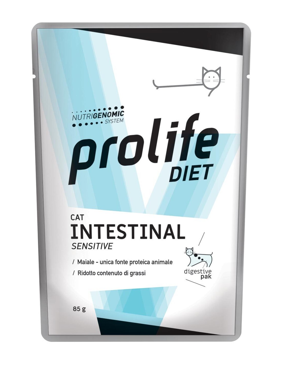 Prolife Intestinal è l'alimento dietetico completo e bilanciato studiato per il gatto che presenta patologie gastrointestinali. Grazie a ingredienti altamente digeribili, ai prebiotici Fos e Mos, ai bioflavonoidi e all'accresciuto livello di elettroliti, aiuta a regolarizzare il transito intestinale, rinforzando l'apparato digerente. L'elevata appetibilità delle carni, unito a una buona dose di energia, facilita l'assunzione dell'alimento in modo da non sovraccaricare l'organismo nella delicata fase della digestione.