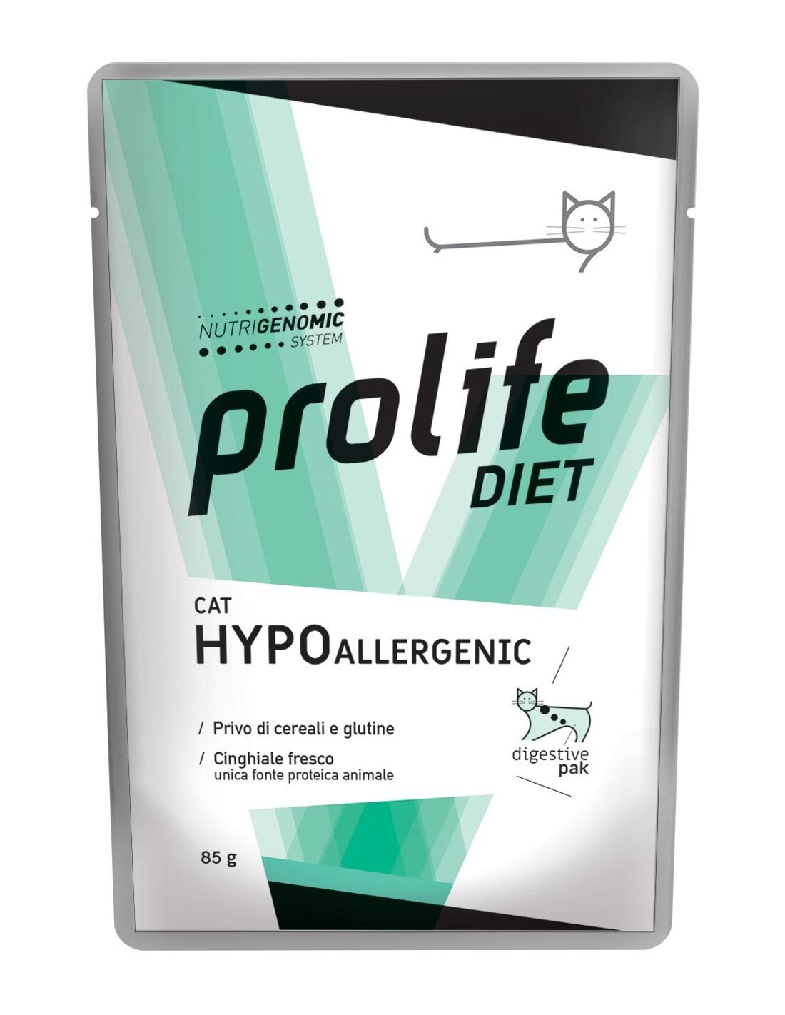 Alimento completo dietetico (bustina di carne), per gatti ipersensibili o intolleranti, da utilizzare sotto prescrizione del veterinario.
