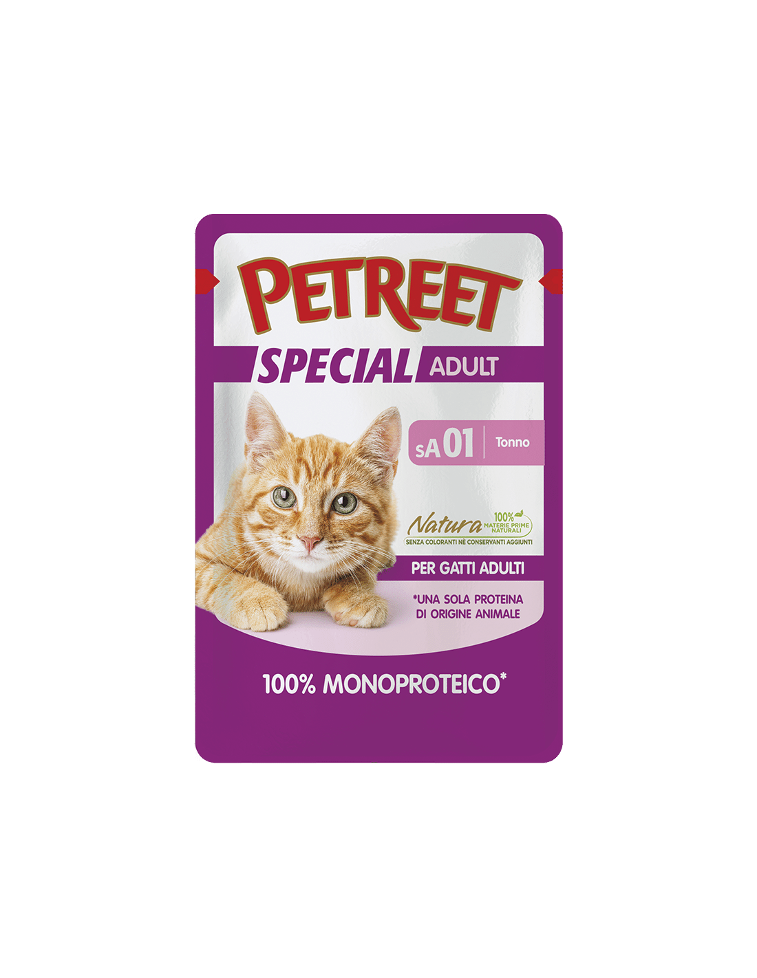 Petreet 100% monoproteico contiene proteine di origine animale al 100% da una sola materia prima, senza coloranti né conservanti aggiunti. Tutte le varianti sono cotte in una gustosa salsa naturale per esaltare il sapore delle materie prime utilizzate.