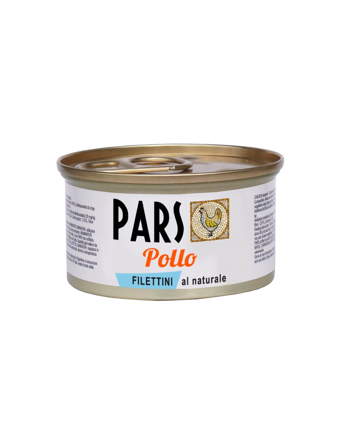 Composizione. Carni e derivati (carne di pollo 100%), sottoprodotti di origine vegetale (amido di tapioca) 1%, zuccheri (saccarosio) 0,4%. Additivi. Additivi nutrizionali: Vitamina E 50 mg/kg. Componenti analitici. Umidità 80,4%, Proteina 16,06%, Grassi grezzi 0,42%, Fibra grezza 0,11%, Ceneri grezze 0,55%. Modalità d'uso e razioni giornaliere indicative. MAMMIFERI CARNIVORI: circa 60 g per ogni kg di peso corporeo in abbinamento ad altri alimenti PARS. MAMMIFERI ONNIVORI: utilizzare miscelato con riso e verdure cotte, o con PARS riso soffiato, PARS riso soffiato con verdure e frutta. Quantità giornaliera da 50 g a oltre per ogni Kg di peso corporeo. UCCELLI, RETTILI CARNIVORI: regolarsi in base all'esperienza acquisita o sentire il parere del veterinario. Servire a temperatura ambiente. Vi ricordiamo che i fabbisogni possono variare notevolmente in base al singolo soggetto (temperamento, età, attività, metabolismo, ecc.) ed alla temperatura ambientale. Lasciare sempre una ciotola d'acqua fresca a disposizione.