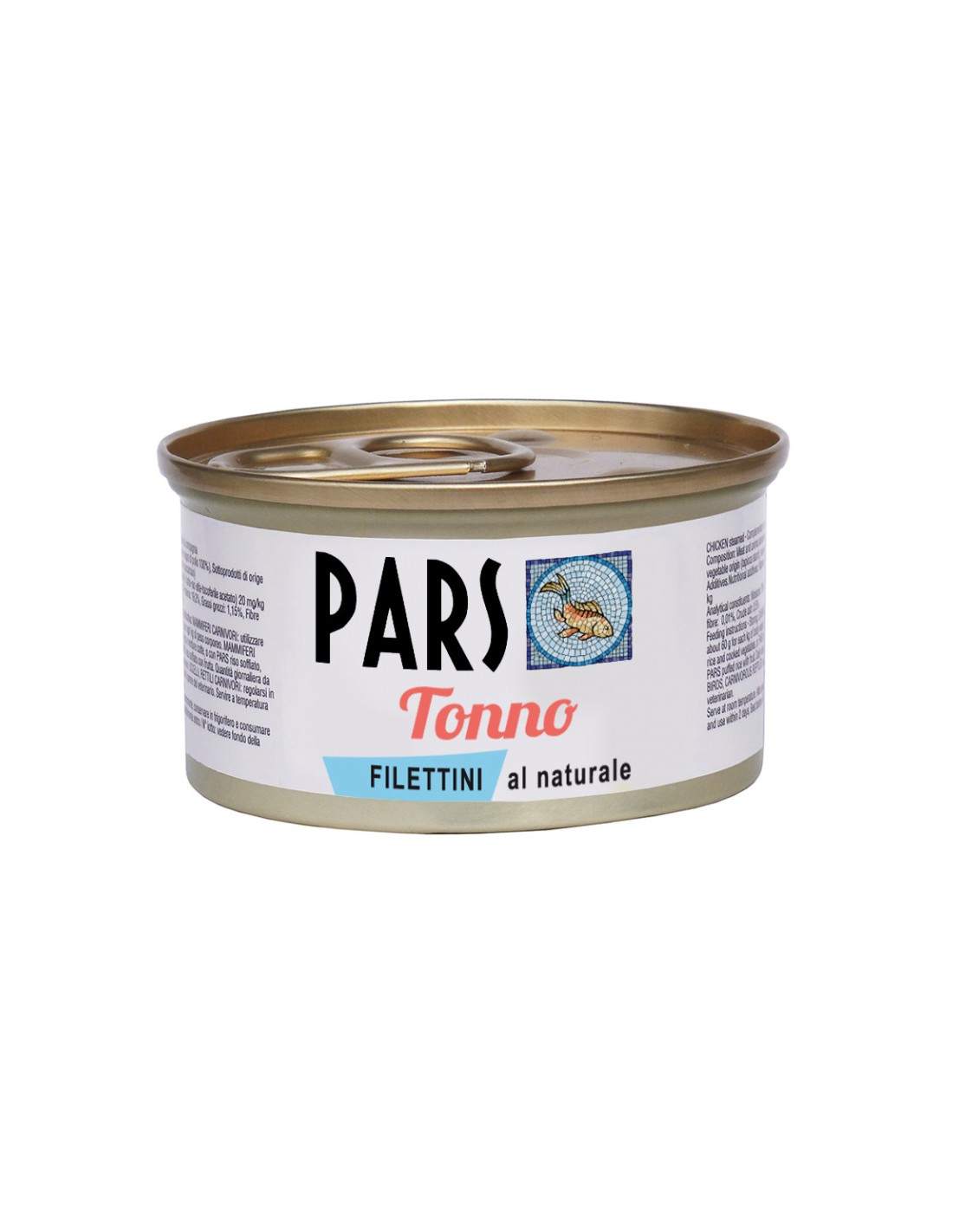 Composizione. Pesci e sottoprodotti dei pesci (tonno 100%), sottoprodotti di origine vegetale (amido di tapioca) 1%, zuccheri (saccarosio) 0,4%. Additivi. Additivi nutrizionali: Vitamina E 50 mg/kg. Componenti analitici. Umidità 80,90 %. Proteina 16,21%, Grassi grezzi 0,58%, Fibra grezza 0,10%, Ceneri grezze 1,40%. Modalità d'uso e razioni giornaliere indicative. MAMMIFERI CARNIVORI: circa 60 g per ogni kg di peso corporeo in abbinamento ad altri alimenti PARS. MAMMIFERI ONNIVORI: utilizzare miscelato con riso e verdure cotte, o con PARS riso soffiato, PARS riso soffiato con verdure e frutta. Quantità giornaliera da 50 g a oltre per ogni Kg di peso corporeo. UCCELLI, RETTILI CARNIVORI: regolarsi in base all'esperienza acquisita o sentire il parere del veterinario. Servire a temperatura ambiente. Vi ricordiamo che i fabbisogni possono variare notevolmente in base al singolo soggetto (temperamento, età, attività, metabolismo, ecc.) ed alla temperatura ambientale. Lasciare sempre una ciotola d'acqua fresca a disposizione.