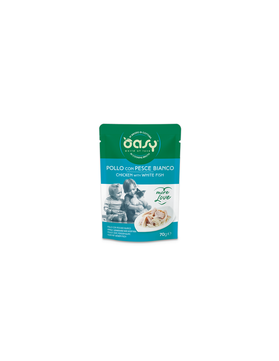 pollo 55%, brodo di pollo 37,83%, pesce bianco 5%, riso 1%, aroma naturale (pollo) 1%.