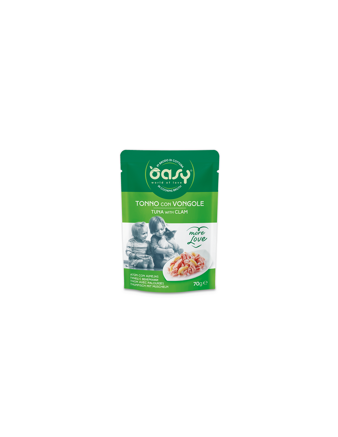 tonno 55%, brodo di pesce 37,98%, vongole 5%, riso 1%, aroma naturale (pollo) 1%.